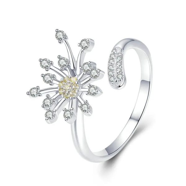خاتم فضة 925 تصميم زهرة متفتحة مرصع بالزركون الفاخر مقاس قابل للتعديل