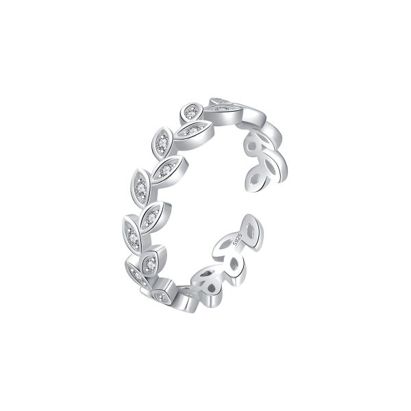 خاتم فضة 925 بتصميم أوراق الشجر الأنيق قابل للتعديل
