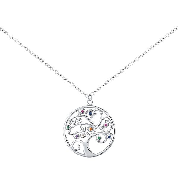 قلادة فضة 925 بتصميم شجرة الحياة المرصعة بالزركون الملون اللامع