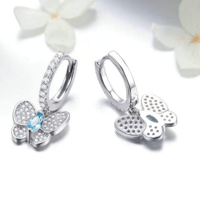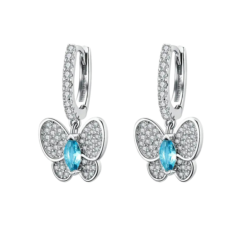 حلق فراشة زرقاء فضة بتصميم أنثوي راق